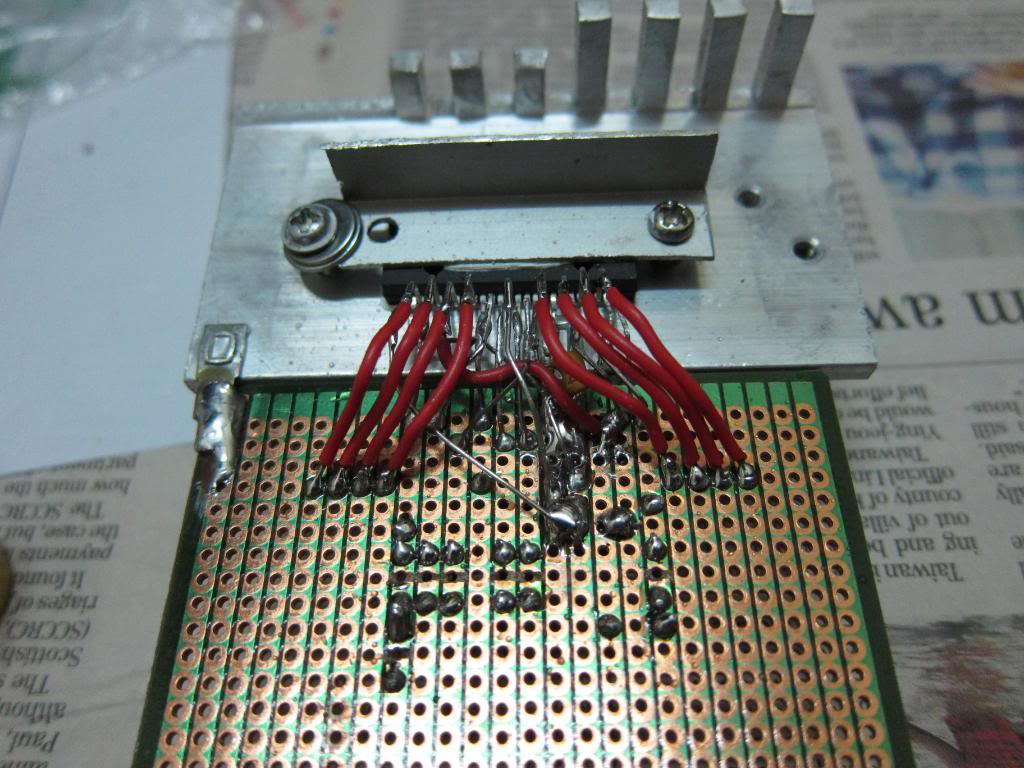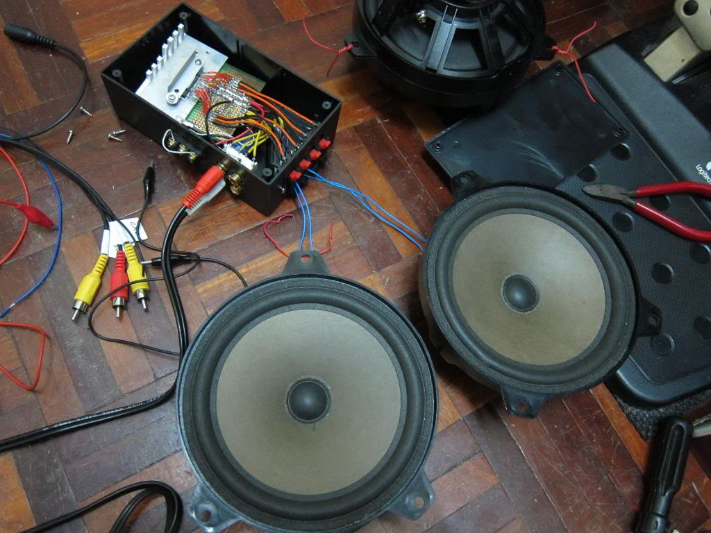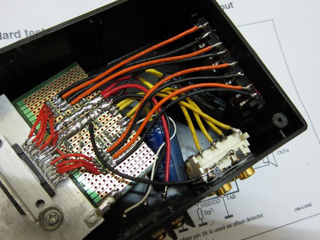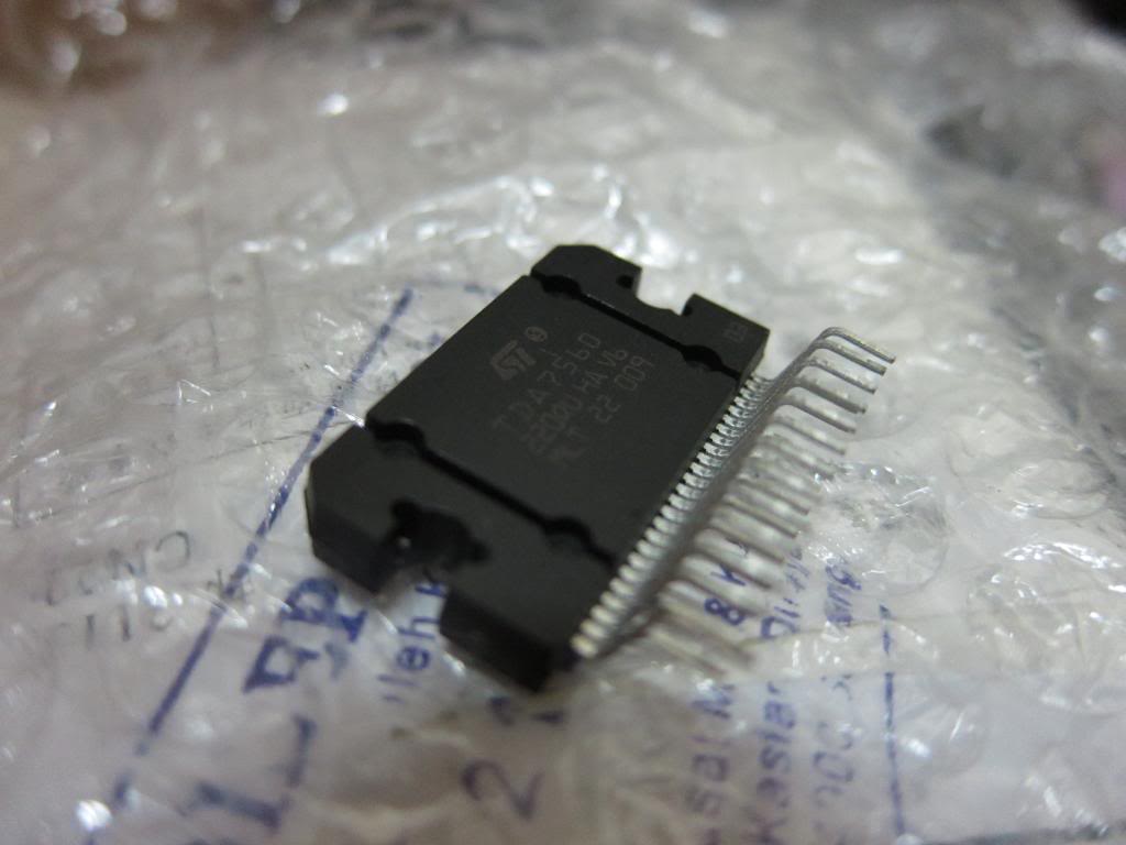 The amplifier IC came in just before the new year weekend. TDA7560 is quad 45W bridge amplifier IC, datasheet.Supporting components and parts for the amplifier box were acquired and build up started. Pictures!