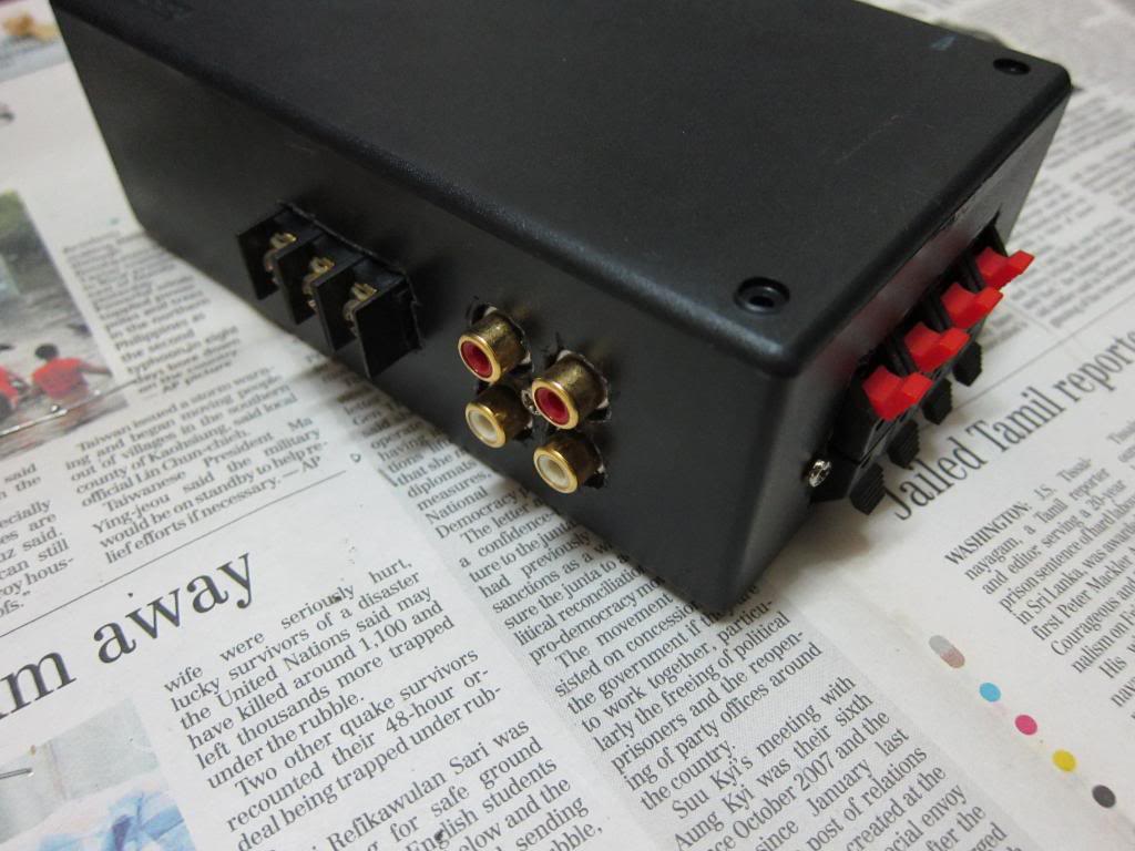 In the end, the amplifier worked on the first try, no smoke or burning power supply. The amplifier has a fixed gain – no gain control on the box – so volume control comes from the computer itself. still need to be done is air vent on the box so the heat from the amplifier can escape the box.
